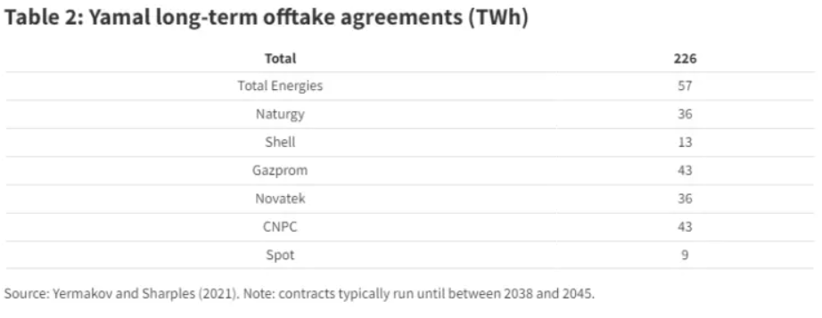 Las exportaciones a la UE desde Rusia parten principalmente de la terminal de GNL de Yamal. La terminal tiene una capacidad de exportación de 16,5 millones de toneladas de GNL al año (235 TWh). La propiedad de la terminal es una empresa conjunta entre Novatek (50,1%), Total Energies (20%), China National Petroleum Cooperation (20%) y el Fondo de la Ruta de la Seda (9,9%). Más del 90% de las exportaciones de la terminal de Yamal están cubiertas por contratos a largo plazo (Tabla 2). Para atraer esta inversión extranjera a la terminal de GNL de Yamal, el gobierno ruso concedió una exención temporal a las exportaciones de los derechos de exportación y los impuestos sobre la extracción de minerales. Las empresas que exportan desde la terminal sí pagan un impuesto del 34 por ciento sobre los beneficios (Corbeau, 2023).