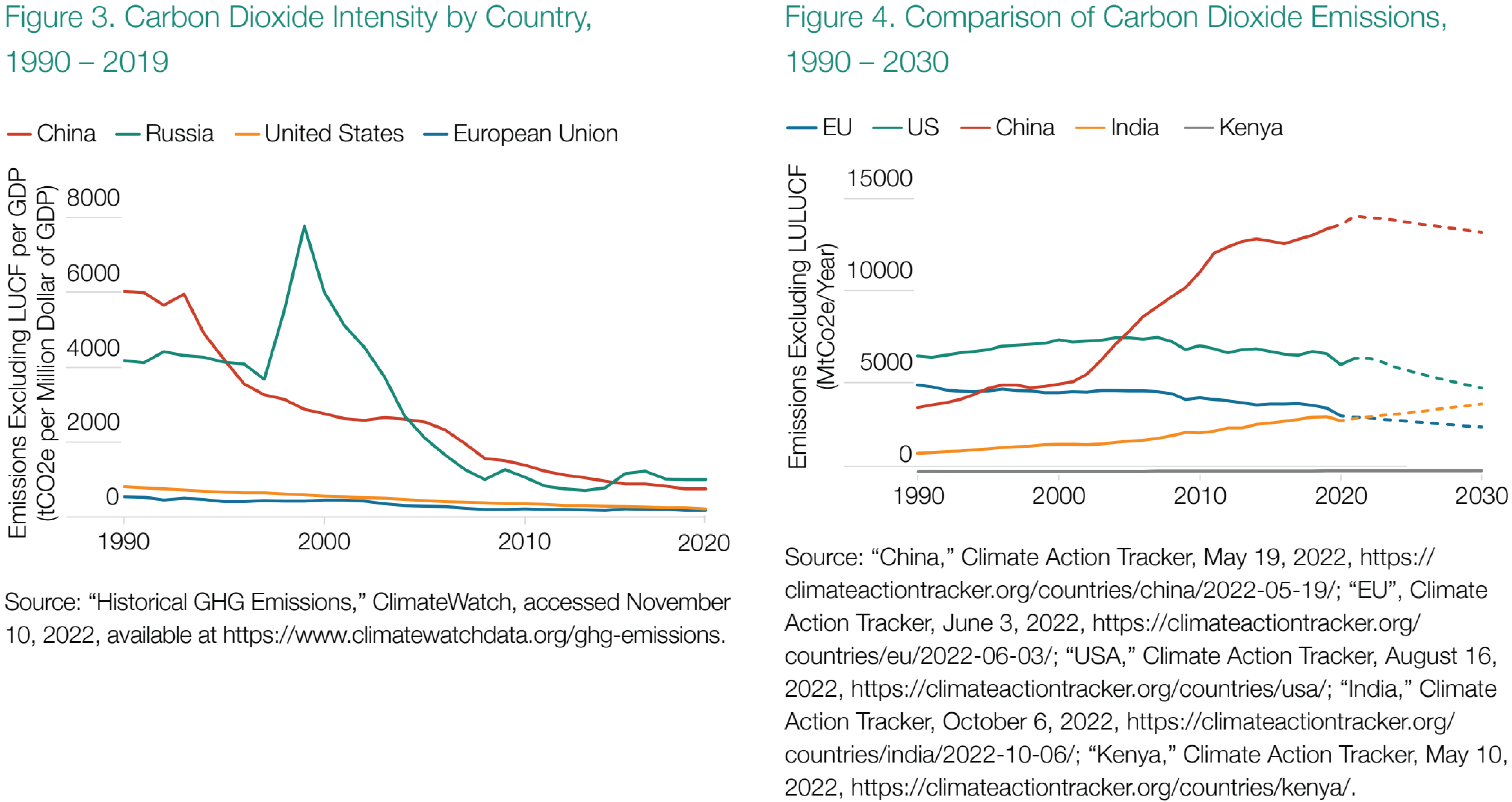 Abbildung 3 enthält ähnliche Vergleiche für die CO2-Intensität der führenden Länder. Auch hier ist Russland viel verschwenderischer als die USA oder die EU und stößt etwa 1.006 Tonnen CO2 pro Million Dollar BIP aus. Der Iran, Venezuela und Saudi-Arabien stoßen 2.162, 1.756 bzw. 651 Tonnen CO2 pro Million Dollar des BIP aus.