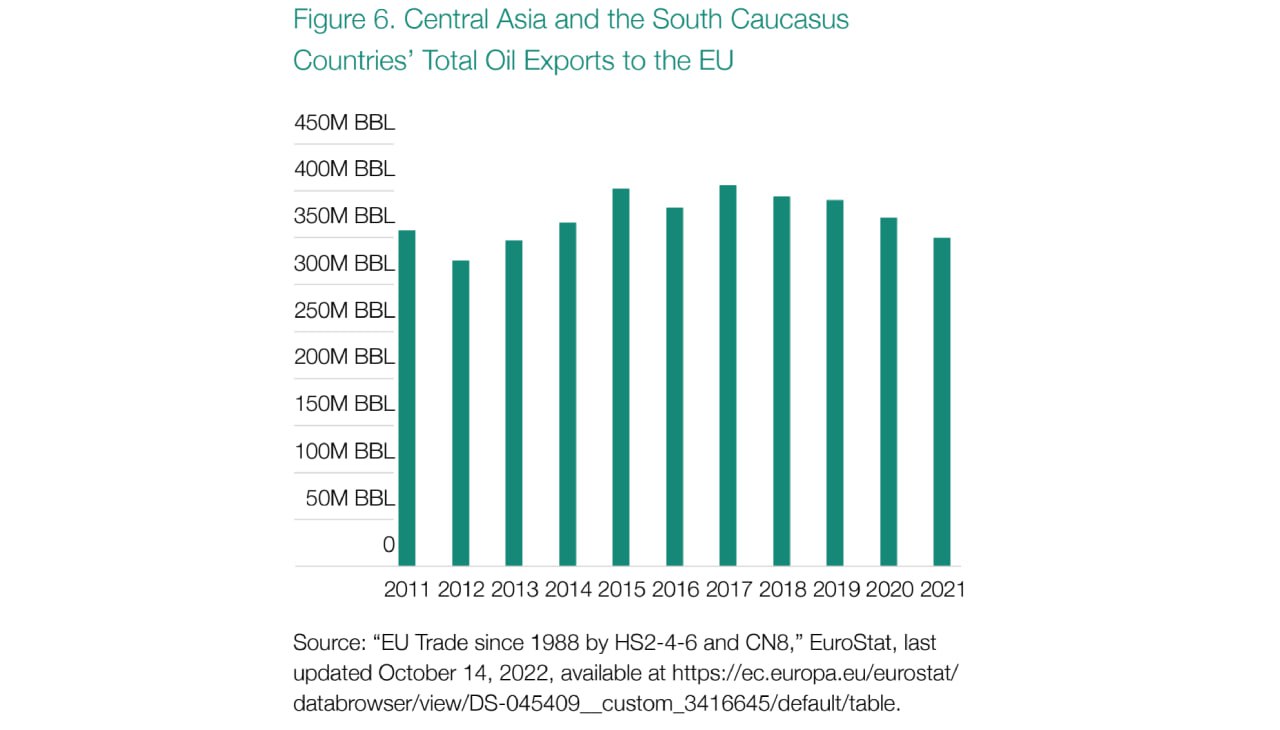 Wie Abbildung 6 zeigt, haben Zentralasien und der Kaukasus rund 1 mbd in die EU exportiert. Ein Großteil davon gelangt über eine Pipeline von Tengis in Kasachstan zum Schwarzen Meer und weiter nach Europa und zu anderen Bestimmungsorten. Die Pipeline verläuft jedoch durch Südrussland und ist möglicherweise Gegenstand von Sanktionen der EU und der USA. Russische Firmen halten etwa 36,5 Prozent an dem Projekt, während US-Konzerne etwa 22 Prozent besitzen. Russland könnte die Ströme durch diese Pipeline jederzeit unterbrechen. In dieser Region sind riesige Ölreserven vorhanden, die jedoch über Russland oder den Iran transportiert werden müssen, um westliche Ziele zu erreichen. Keine dieser beiden verbündeten Mächte ist an einer Konkurrenz durch bündnisfreie Erdölquellen interessiert, obwohl Russland einige Ölexporte aus Aserbaidschan zugelassen hat. Größere Öllieferungen aus Kasachstan über das Kaspische Meer könnten durch Pipelines über die Türkei transportiert werden, aber auch diese werden durch die Interessen des iranisch-russischen Bündnisses erschwert.