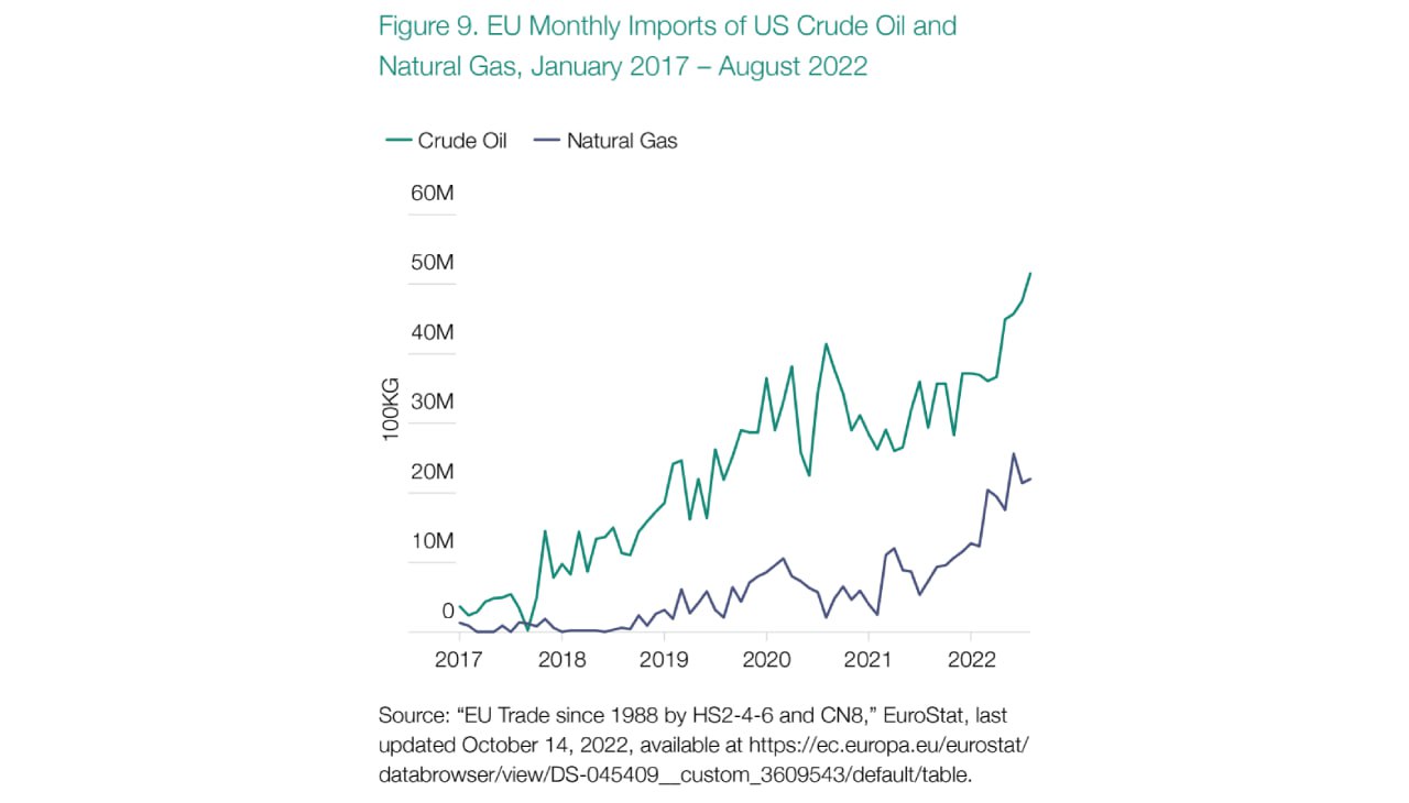 Abbildung 9 zeigt, dass die EU-Einfuhren von Öl und Gas aus den USA in den letzten fünf Jahren mengenmäßig erheblich zugenommen haben. Das Tempo des Anstiegs hat sich seit dem 24. Februar beschleunigt.