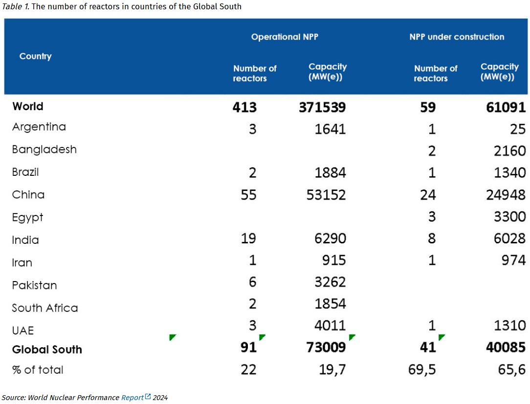 El papel de la energía nuclear en la matriz energética mundial ha sido durante mucho tiempo un tema de intenso debate entre expertos, políticos y líderes empresariales. A mediados del siglo XX, se consideraba una solución clave para satisfacer las necesidades energéticas globales. Sin embargo, estas expectativas se vieron socavadas por diversos factores, incluidas las graves consecuencias de los accidentes en plantas nucleares. Como resultado, algunas naciones desarrolladas con plantas nucleares en operación decidieron desmantelarlas, mientras que otras, principalmente en el mundo en desarrollo, suspendieron indefinidamente sus planes para nuevos proyectos nucleares. Recientemente, ha habido un resurgimiento del interés por la energía nuclear, especialmente en el Sur Global. En este artículo, el concepto convencional de Sur Global se refiere a los países de América Central y del Sur, África, Medio Oriente y Asia (incluyendo China e India, pero excluyendo los estados postsoviéticos y las naciones de la OCDE). Desde una perspectiva energética, los países de este grupo están principalmente interesados en garantizar un suministro energético estable, así como seguridad energética y, como consecuencia, lograr altas tasas de crecimiento en el consumo de energía y electricidad. Un análisis de numerosas previsiones globales y regionales sobre el desarrollo energético publicadas en 2023-2024 sugiere que, para mediados del siglo XXI, la demanda mundial de electricidad aumentará aproximadamente entre 1.8 y 2.5 veces, dependiendo del escenario de desarrollo. Estos escenarios consideran factores como las tasas de crecimiento de la economía y la población a nivel global y regional, el desarrollo de nuevas tecnologías, la efectividad de los programas de eficiencia energética, entre otros. Todos los pronósticos coinciden en que los países del Sur Global aportarán alrededor del 80% del crecimiento en la demanda de electricidad, con China representando más del 45% del crecimiento total a nivel mundial. India desempeñará un papel comparativamente menor en este proceso, contribuyendo con aproximadamente el 15-18% del aumento total. La gran mayoría de los expertos señalan una tendencia global hacia el desarrollo de fuentes de energía renovable (FER), particularmente la energía solar y eólica. Se espera que el creciente uso de energías renovables facilite la implementación de programas de desarrollo con bajas emisiones de carbono, a los cuales la mayoría de las naciones, incluidas las del Sur Global, han comprometido su apoyo. Sin embargo, el elemento crucial de la política energética global hoy en día es el reconocimiento de la energía nuclear como una de las herramientas clave en los esfuerzos para reducir las emisiones de gases de efecto invernadero y, en consecuencia, alcanzar los objetivos climáticos. En la COP28, veinticinco naciones se comprometieron a triplicar su capacidad de energía nuclear para 2050. Esta fue la reacción de la comunidad internacional ante el hecho de que la decisión de la Comisión Europea de incluir la energía nuclear en la "taxonomía verde" había superado todos los obstáculos burocráticos de la UE y finalmente había entrado en vigor. La declaración para triplicar la capacidad nuclear para 2050 tiene como objetivo acelerar la descarbonización de la economía global y reducir las emisiones de gases de efecto invernadero para alcanzar los objetivos del Acuerdo de París. Algunos países del Sur Global, como Ghana, Jamaica, Mongolia, Marruecos y los Emiratos Árabes Unidos, también han respaldado esta declaración.
