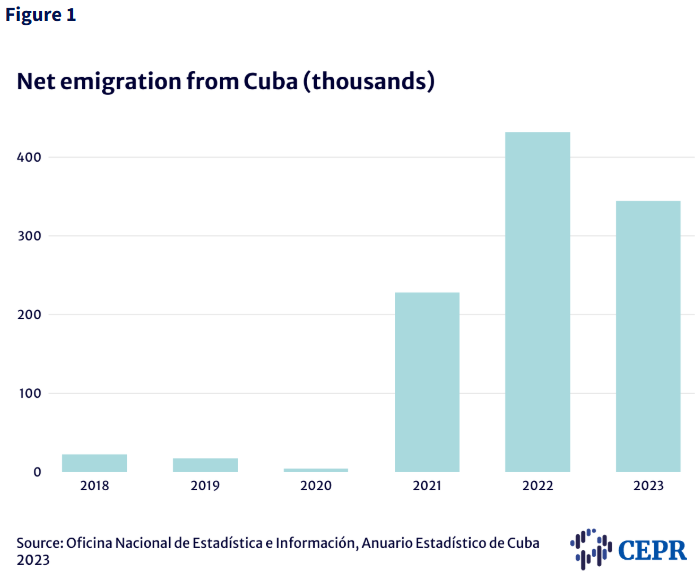 This economic crisis has in turn spurred a migration crisis. Data from the national statistics office of the government of Cuba shows skyrocketing net emigration following 2020 (see Figure 1). By August 2022, the outflow of migrants had surpassed that of the famous 1980 Mariel boatlift and the 1994 Balsero/Rafter crises combined.