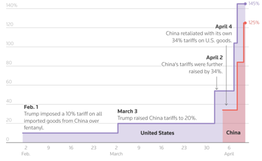 Abbildung 4: Zollsätze zwischen den USA und China im Jahr 2025