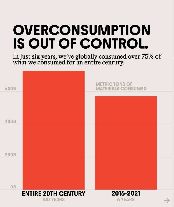 According to the chart on excessive global consumption, in only six years of progress into the 21st century, modern society has exceeded more than half of what it consumed in the 20th century, with a 75% increase above the average recorded over the last 100 years — a truly alarming percentage with a tendency to increase, as a consequence of economic activity, technological advancement, and the increase of armed conflicts worldwide.