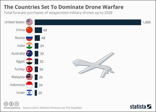 Source: https://www.statista.com/chart/20005/total-forecast-purchases-of-weaponized-military-drones/