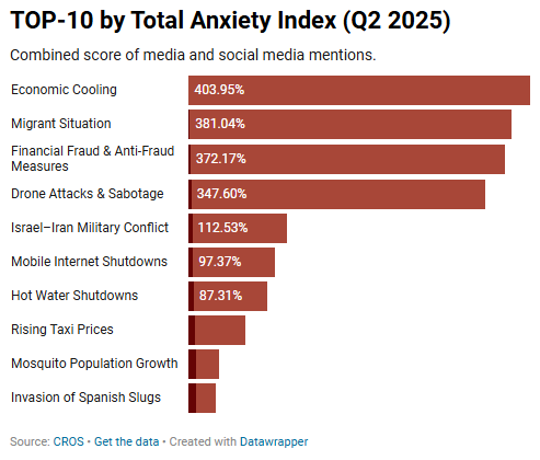 Tras la invasión a gran escala de Ucrania en febrero de 2022, Rusia ha enfrentado duras sanciones y graves desafíos económicos. Aunque el gobierno ha respondido con un control estricto del discurso público, estas políticas y sus consecuencias han transformado profundamente las preocupaciones de los ciudadanos comunes. La opinión pública rusa ha evolucionado a lo largo del conflicto. Inicialmente, hubo un auge del sentimiento patriótico, pero conforme la guerra se prolongó, las ansiedades sociales cambiaron. Si bien el temor a la guerra sigue presente, la atención se ha desplazado cada vez más hacia problemas internos, como la economía y las tensiones sociales. Las encuestas de 2025 indicaron que la mayoría de los rusos apoyaba negociaciones de paz para poner fin al conflicto, en lugar de continuar con la acción militar. Este cambio parece estar directamente relacionado con el creciente impacto económico de la guerra, así como con los ataques con drones y los daños en territorio ruso, que acercaron el conflicto a la vida cotidiana de muchos ciudadanos rusos.