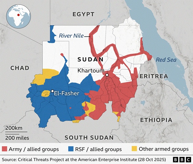 In early November 2025, the RSF announced it had agreed to a humanitarian truce proposed by the US, the United Arab Emirates (UAE), Saudi Arabia and Egypt. However, the army said it would be wary of agreeing to a truce, accusing the RSF of not respecting ceasefires. UN health chief Tedros Adhanom Ghebreyesus has also lamented that there is less global interest in the conflict in Sudan, and other recent conflicts in Africa, compared to crises elsewhere in the world. As of late November 2025, both parties are still waging war and millions of innocent Sudanese are suffering.