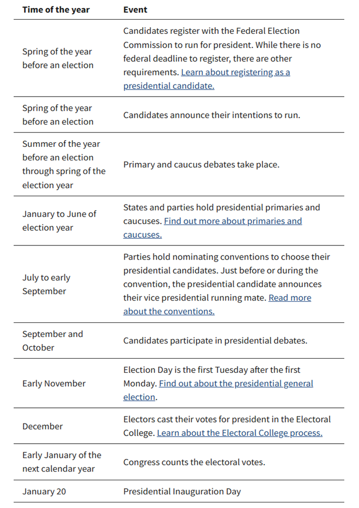 (source: USA In Brief: ELECTIONS. https://www.usa.gov/presidential-election-process)