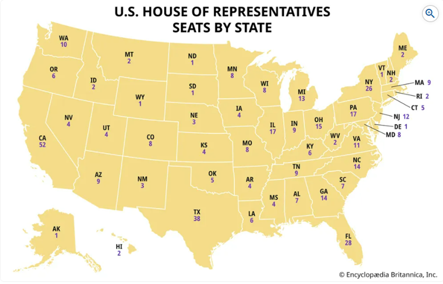 Figure 3: US House of Representatives Seats by State (source: Britannica)