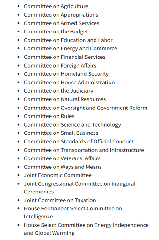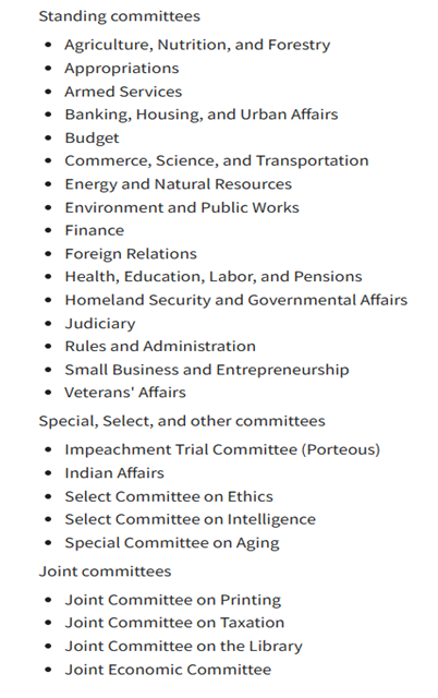A further dominating element of House organization is the committee system, under which the membership is divided into specialized groups for purposes such as preparing bills for the consideration of the entire House, regulating House procedure, and holding hearings. Each committee is chaired by a member of the majority party. Almost all bills are first referred to a committee, and ordinarily the full House cannot act on a bill until the committee has “reported” it for floor action. There are approximately 20 standing committees, organized mainly around major policy areas, each having subcommittees, staffs, and budgets. They may hold hearings on questions of public interest, propose legislation that has not been formally introduced as a bill or resolution, and conduct investigations. Among important standing committees are those on appropriations, on ways and means (which handles matters related to finance), and on rules. In addition, there are select and special committees, which are usually appointed for a specific project and for a limited period of time.