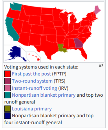 A number of voting methods are used within the various jurisdictions in the US, the most common of which is the first-past-the-post system. In the first-past-the-post system, the highest-polling candidate wins the election. Under this system, a candidate who achieves a plurality (that is, the most) of votes wins. But the State of Georgia uses a two-round system, where if no candidate receives a majority of votes, then there is a runoff between the two highest polling candidates. [37]