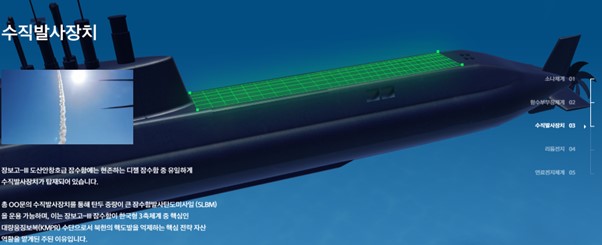 Strategic Weapon Deployment CapabilityThe most notable feature of the Dosan Ahn Chang-ho class is the vertical launch system (VLS) with 6 launchers (Batch-II will have 10 launchers), which allows the operation of the Hyunmoo-4-4 submarine-launched ballistic missile (SLBM). This capability is considered the most powerful strategic strike capability among non-nuclear nations. Currently, the Dosan Ahn Chang-ho, Kim Jong-seo, and Yun Bong-gil have been commissioned, with a total of 9 submarines planned: 3 from Batch-I, 3 from Batch-II, and 3 from Batch-III.