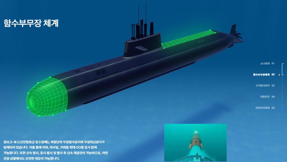 In December 2012, the Defense Acquisition Program Administration (DAPA) signed a contract with Daewoo Shipbuilding & Marine Engineering (DSME) for the construction of two Dosan Ahn Chang-ho class submarines. The contract amount for the two submarines was approximately 1.675 trillion KRW (1.14 billion USD). The project was based on the construction experience of the Jangbogo-class and Son Won-il-class submarines, as well as the technology transferred from HDW and the experience in developing the DSME-1400 submarine (Nagapasa-class submarine) based on the Type 209 design. Dosan Ahn Chang-ho (launched in August 2021) is the first submarine fully designed, built, and equipped with its own weapon systems by South Korea. It has a displacement of 3,000 tons, making it a large submarine. It is the first in the world to be equipped with lithium-ion batteries, enabling long-term submerged operations without the need for an AIP system.