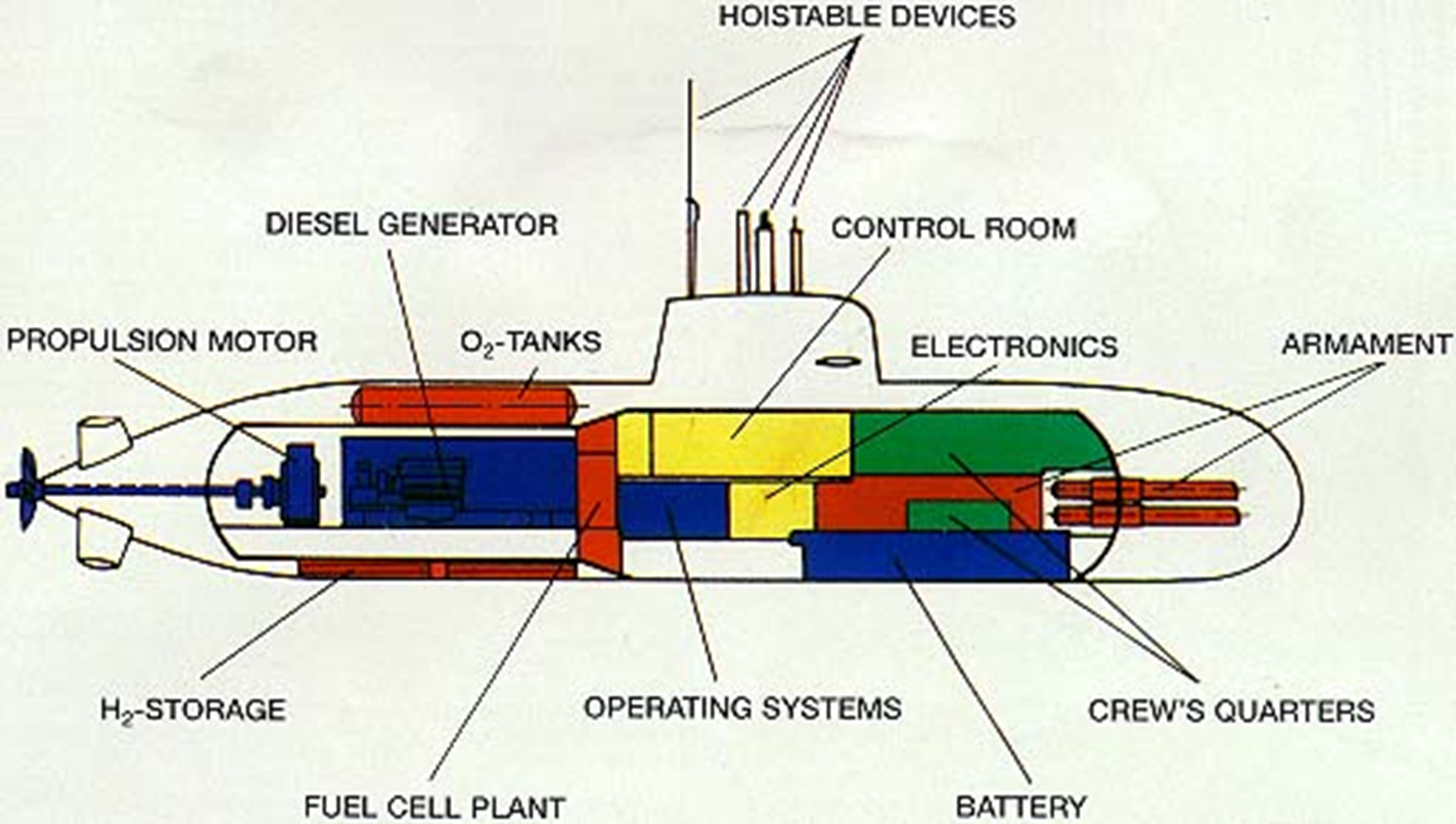 Figure 8. Simplified cross-section of the Type 214 Submarine (Source: TKMS)