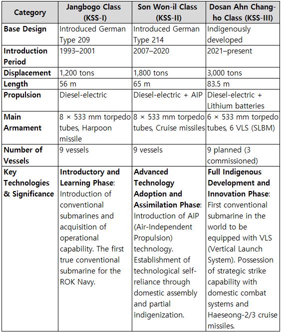In the 21st century, the maritime security environment in Northeast Asia is changing more rapidly than ever, with information superiority and covert operational capabilities at sea emerging as core components of national security. At the heart of this shift lies the submarine force, which possesses both strategic deterrence and surveillance/reconnaissance capabilities. As China, Japan, and North Korea advance their submarine technology, South Korea finds itself in a situation demanding independent maritime strategic assets to counter these developments. The Republic of Korea Navy (ROKN) submarine force, which initially relied on foreign technology, has now grown into a submarine technology powerhouse capable of indigenous design and construction. The introduction of the KSS-III Dosan Ahn Changho-class submarine, in particular, has equipped South Korea with SLBM operational capability and advanced AIP (Air-Independent Propulsion) and electric propulsion technology, establishing a strategic-level submarine force. This technological advancement not only strengthens national defense but also elevates the international status of the Korean defense industry, leading to enhanced export competitiveness. Concurrently, amidst the military expansion of surrounding countries, the need for nuclear-powered submarines (SSNs)—which offer far greater strategic survivability and sustained operational capability—is being raised in South Korea. Despite the high cost, the SSN is a strategic asset that provides overwhelming stealth, range, and operational endurance in the long run. This article will comprehensively examine the importance and technical characteristics of submarines, followed by an analysis of South Korea's submarine force development, its international standing, and comparisons with neighboring countries. Furthermore, it will explore the implications of the nuclear submarine acquisition debate for South Korea's future security strategy.