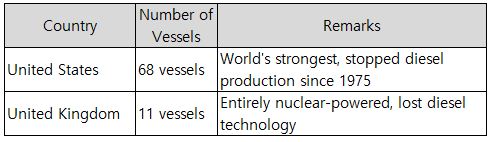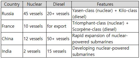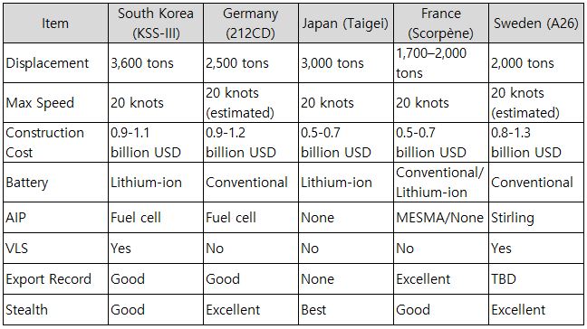 Table 13. Comparison of the latest submarines of South Korea and neighboring countries
