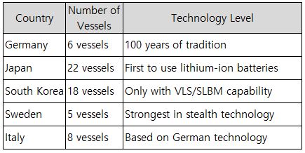 This section examines the key features of the latest submarine technologies of South Korea, North Korea, China, and Japan.