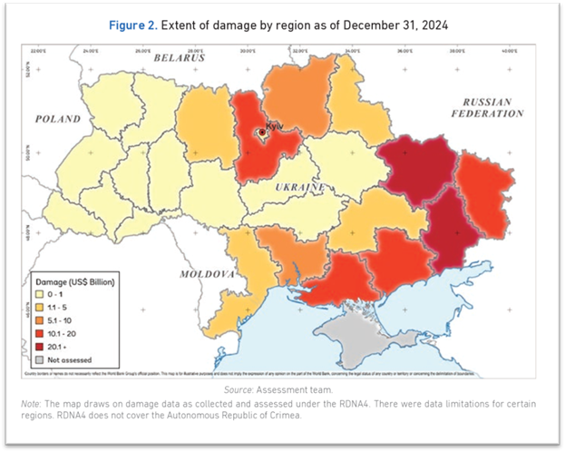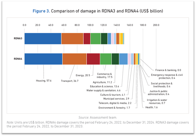 Source: UKRAINE FOURTH RAPID DAMAGE RDNA4 AND NEEDS ASSESSMENT. (2025, February). World Bank Group. https://documents1.worldbank.org/curated/en/099022025114040022/pdf/P180174-ca39eccd-ea67-4bd8-b537-ff73a675a0a8.pdf