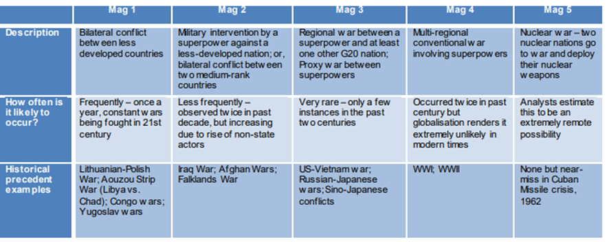 Table 1: Magnitude scale of conflict (source: Cambridge Centre for Risk Studies)