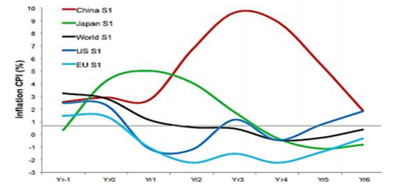 Impact of China-Japan conflict on inflationHistorically, one of the most devastating macroeconomic consequences in post-conflict periods is high and runaway inflation. Figure 3 shows the effects of the conflict on inflation in different countries in the scenario S1.