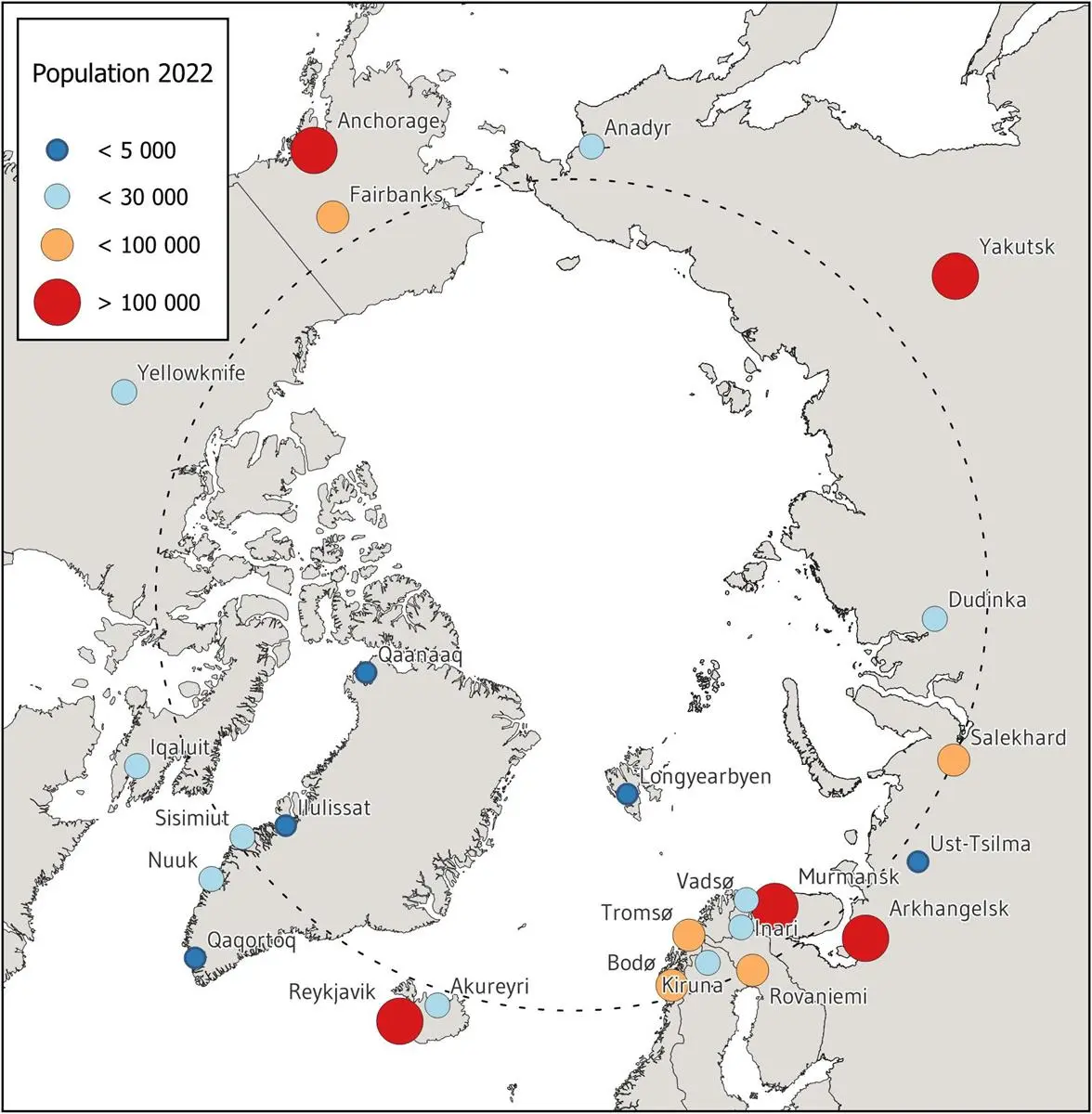 Figure 2: Arctic Population Centers. Map by Arto Vitikka, Arctic Centre, University of Lapland.