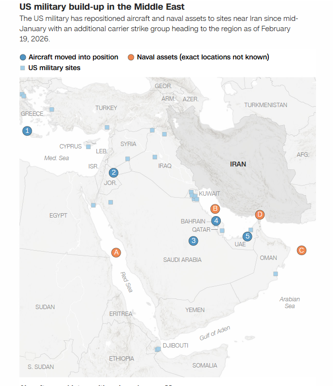Oil prices are climbing amid signs that the US may plan to launch military strikes on Iran, raising questions about the potential economic fallout of heightened conflict in the Middle East. US President Trump has increased pressure on Iran, home to some of the world’s largest oil reserves, over the country’s disputed nuclear program. Open hostilities between the US and Iran could restrict global oil flows, raising US energy prices and driving up inflation, according to economists. While President Trump hasn‘t yet made a final decision about whether to strike Iran, top national security officials have told the president that the US military could be ready as soon as Saturday on February 21, 2026, sources familiar with the discussions have told CBS News. At the inaugural meeting for President Trump’s “Board of Peace” on Thursday, February 19, 2026, the president said that Iran has about 10 days to make a deal ending its nuclear program, or “bad things will happen.” [1] If the US carries out military strikes on Iran, it can create a lot of economic problems. This paper first examines the situations of US military build up around Iran and then explores the scenarios of oil supply disruption when the US carries out military strikes on Iran and its impact on global oil price.