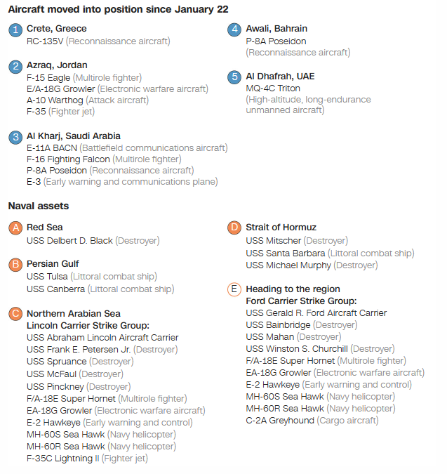 Figure 1: US military presence around Iran (Congressional Research Service, Airframes.io, Flightradar24, Planet Labs PBC, Airbus