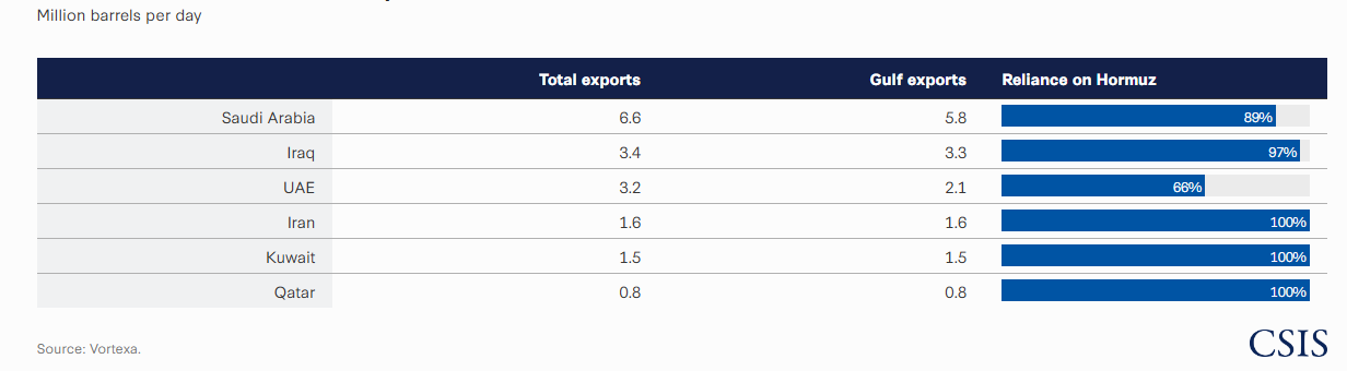 Table 1: Middle East Gulf Oil Exporters’ Reliance on Strait of Hormuz