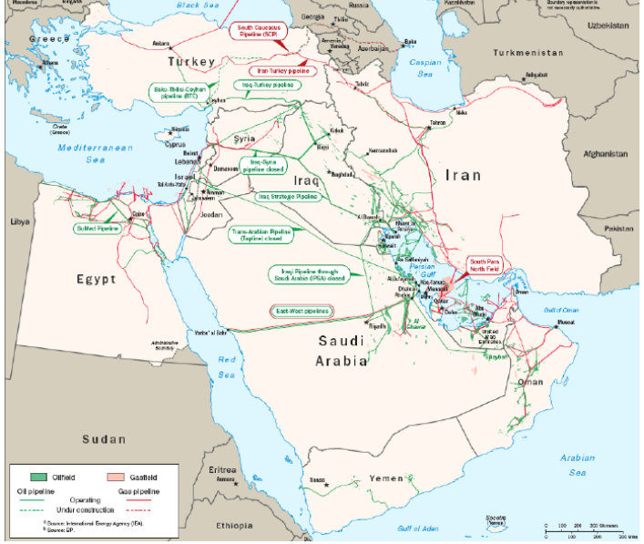 Scenario 2: Iran directly attacks Arab Gulf oil facilitiesIf the US strikes Iran, then Iran could directly attacks oil facilities in Arab Gulf countries. As Figure 8 shows, these attacks could include producing fields, gathering and processing nodes, or oil export terminals.