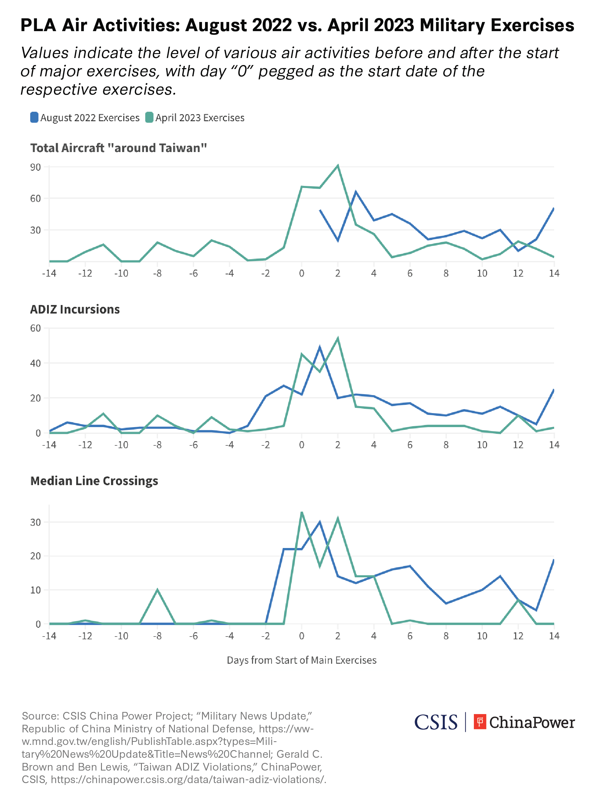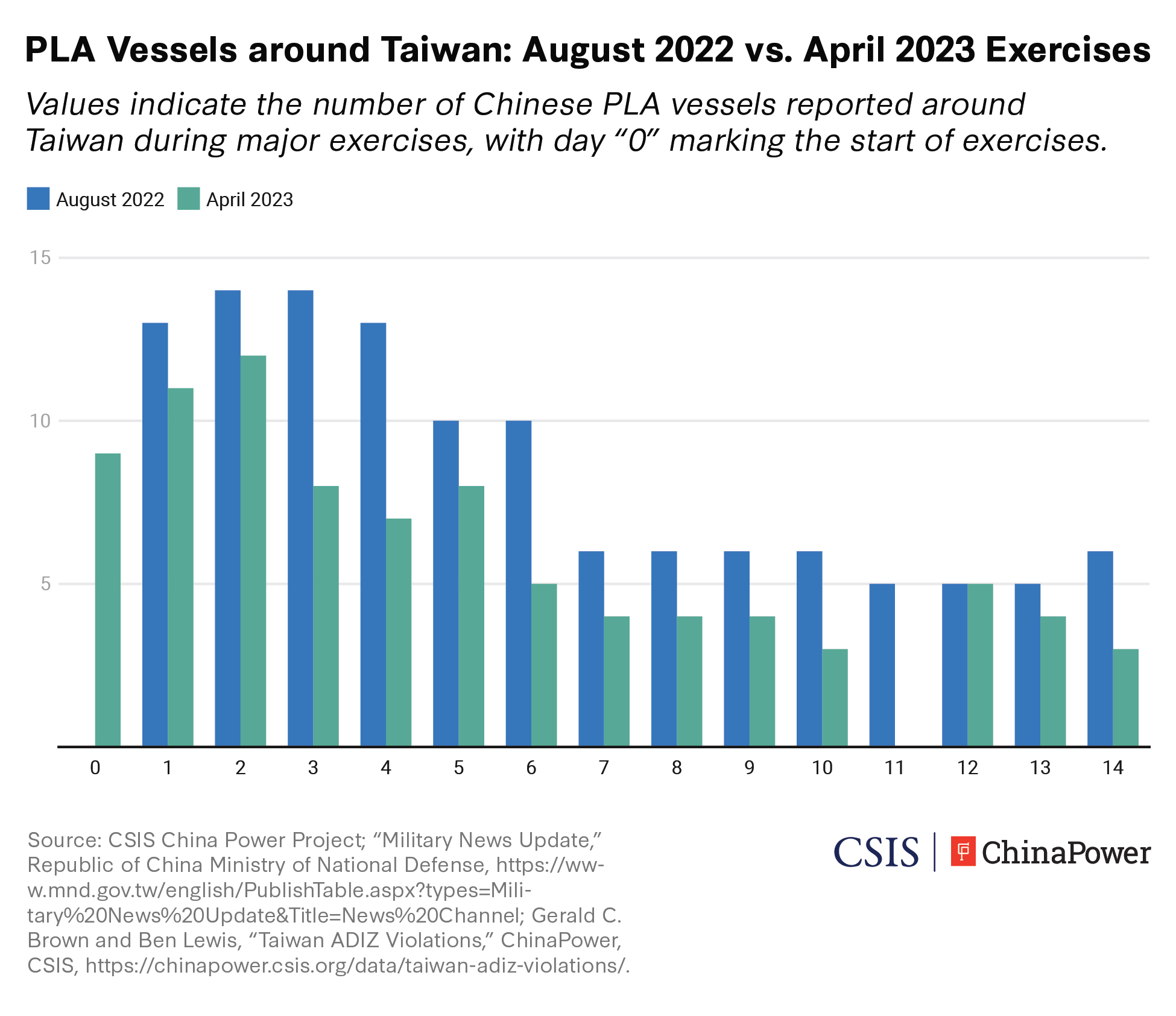 На первый взгляд военные действия Китая в апреле 2023 года существенно отличались от действий в августе 2022 года. Некоторые из наиболее провокационных действий учений 2022 года, такие как запуск ракет над Тайванем и создание запретных зон военных учений вокруг острова, больше не проводились в 2023 году. Однако последний раунд военных действий также показал значительную преемственность и даже прогресс в отношении операций, тактики и охвата НОАК. В целом военные действия Китая в апреле 2023 г. были не менее значительными, чем в августе 2022 г., и оба учения продемонстрировали диапазон возможностей, которые НОАК отрабатывает против Тайваня.