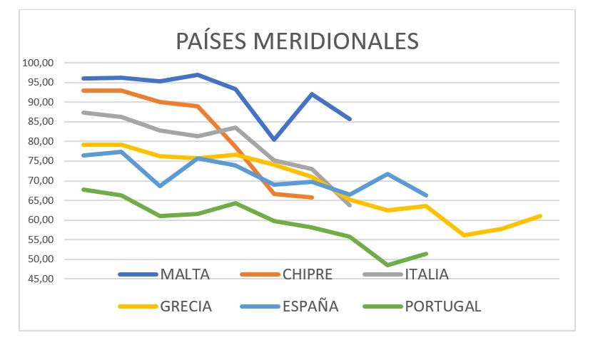 إن الحماسة السياسية التي أعقبت انهيار الأنظمة الشيوعية، والتي تم التعبير عنها في معدلات المشاركة التي تجاوزت 80٪ في السنوات الأولى من الديمقراطية، قد تلاشت. متوسط هذه الفترة لا يصل إلى 63٪، ونسبة الانتخابات الأخيرة لا تصل حتى إلى نصف عدد الناخبين. بعد ثلاثة عقود من اندماجها في النظام الليبرالي، لا يبدو أن مواطنيها راضون عن الديمقراطية الانتخابية. لوحظ نفس الاتجاه نحو الانخفاض في بلدان الجنوب. بالاستثناء المذكور أعلاه للاستثناء المالطي، كان الانخفاض هائلا منذ أوائل التسعينيات: 27 نقطة في قبرص، و24 في إيطاليا، و20 في اليونان، و16 في البرتغال (التي هي الآن في أسفل قائمة الأوروبيين الجنوبيين) و10 في إسبانيا.