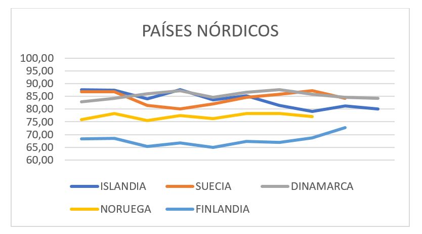 في المقابل، ظلت المشاركة عند مستوى مرتفع ومستقر بشكل عام في بلدان الشمال الأوروبي. لقد تراجعت بشكل طفيف للغاية في السويد وإلى حد ما في أيسلندا، البلد الذي عانى، إلى جانب اليونان، من أكثر الأحداث إخافة في الأزمة المالية في العقد الماضي في أوروبا. في المقابل، زادت المشاركة في البلدان الثلاثة الأخرى (الدنمارك وفنلندا والنرويج) خلال هذه الفترة.